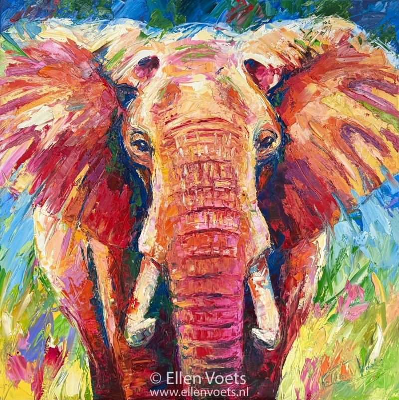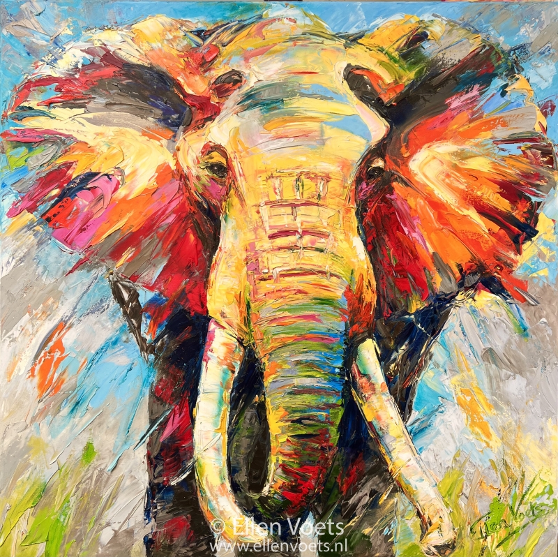 Beeindruckender Elefant, Öl auf Leinen, 100x100 cm
