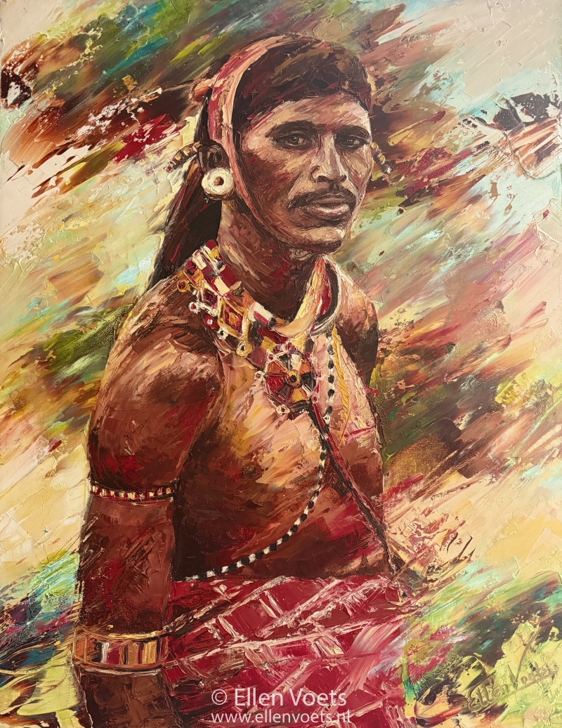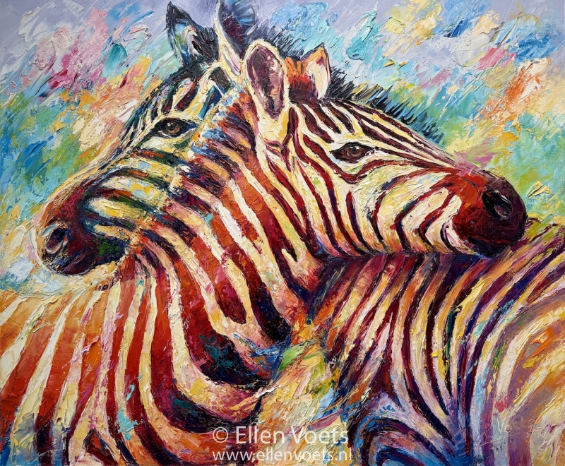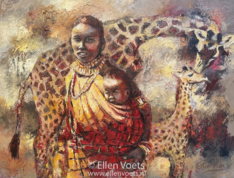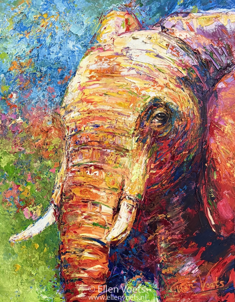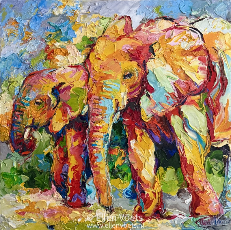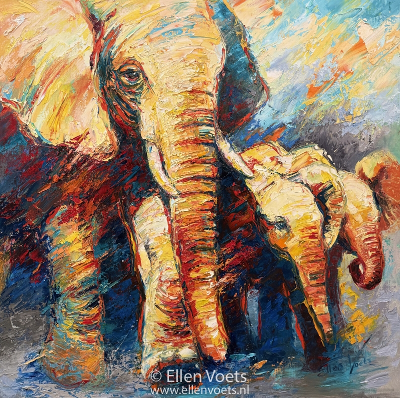 Whether it's a herd of elephants, a group of lions or a single animal; She knows how to paint them in the technique that is so characteristic for her.